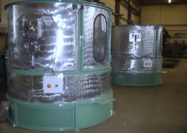 The emulsifier model 1076 is used to prepare the oil solution to be sprayed onto the fibres. It consists of two stainless steel tanks (250+250 litres) complete with pump, electric heating elements, level rods and filters.