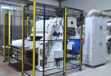 Le système d'extraction pneumatique transporte les fibres réouvertes vers la ligne de traitement ou vers le stockage, optimisant ainsi les flux internes et réduisant les déchets.