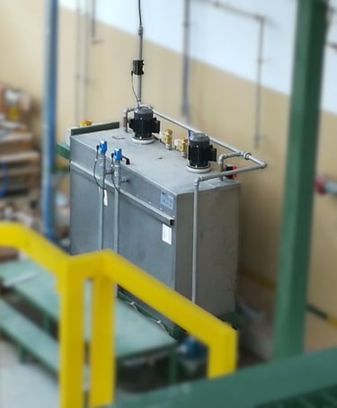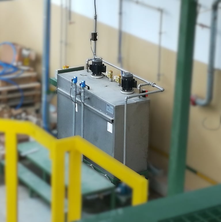 L'émulsionneur modèle 1076 est utilisé pour préparer la solution huileuse à pulvériser sur les fibres. Il se compose de 2 cuves en acier inoxydable (250 + 250 litres) équipées d'une pompe, de thermorésistances électriques, de tiges de niveau et de filtres.